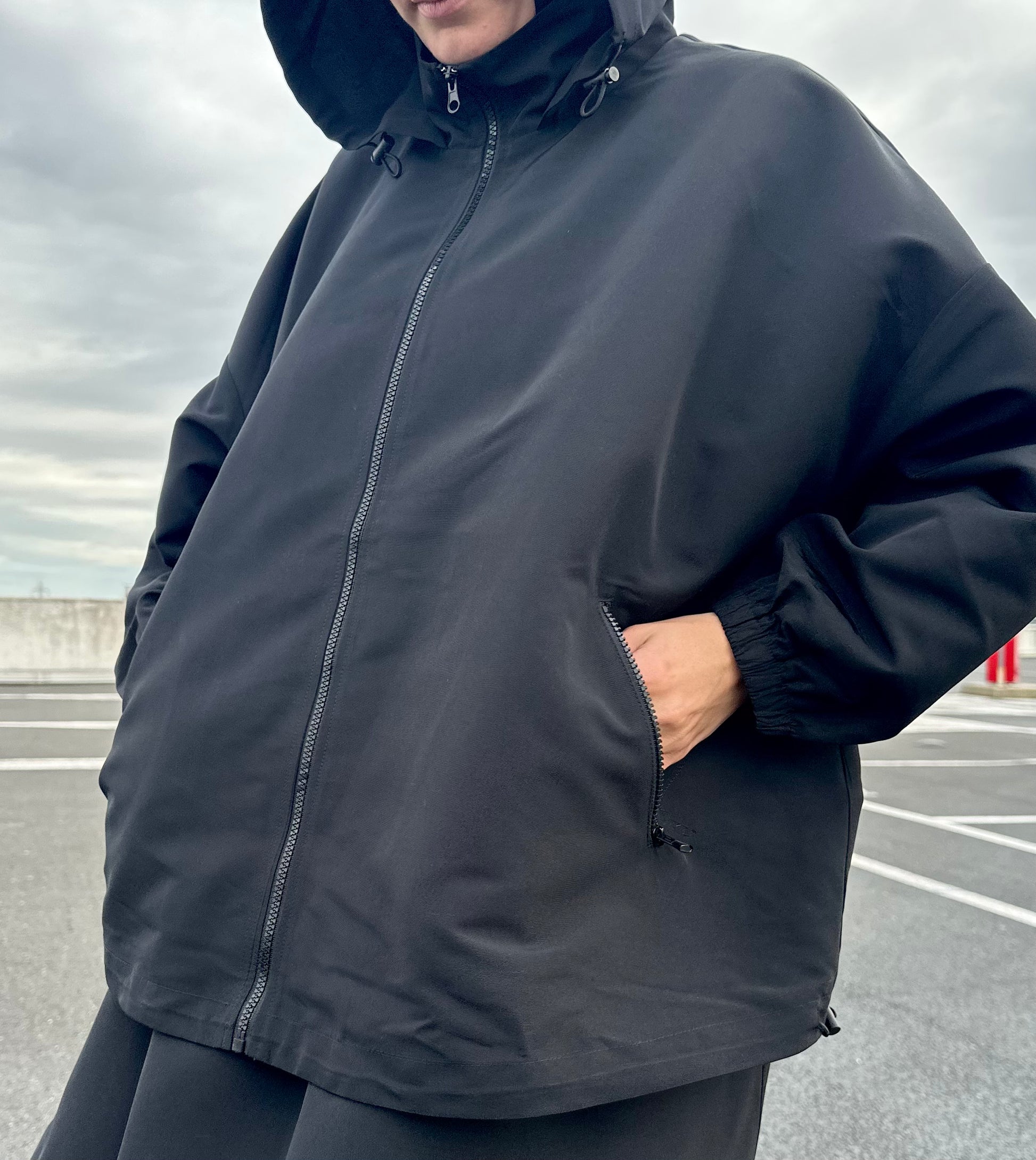 Sa coupe oversize maîtrisée donne une silhouette moderne, confortable et affirmée — le bon volume, sans excès.